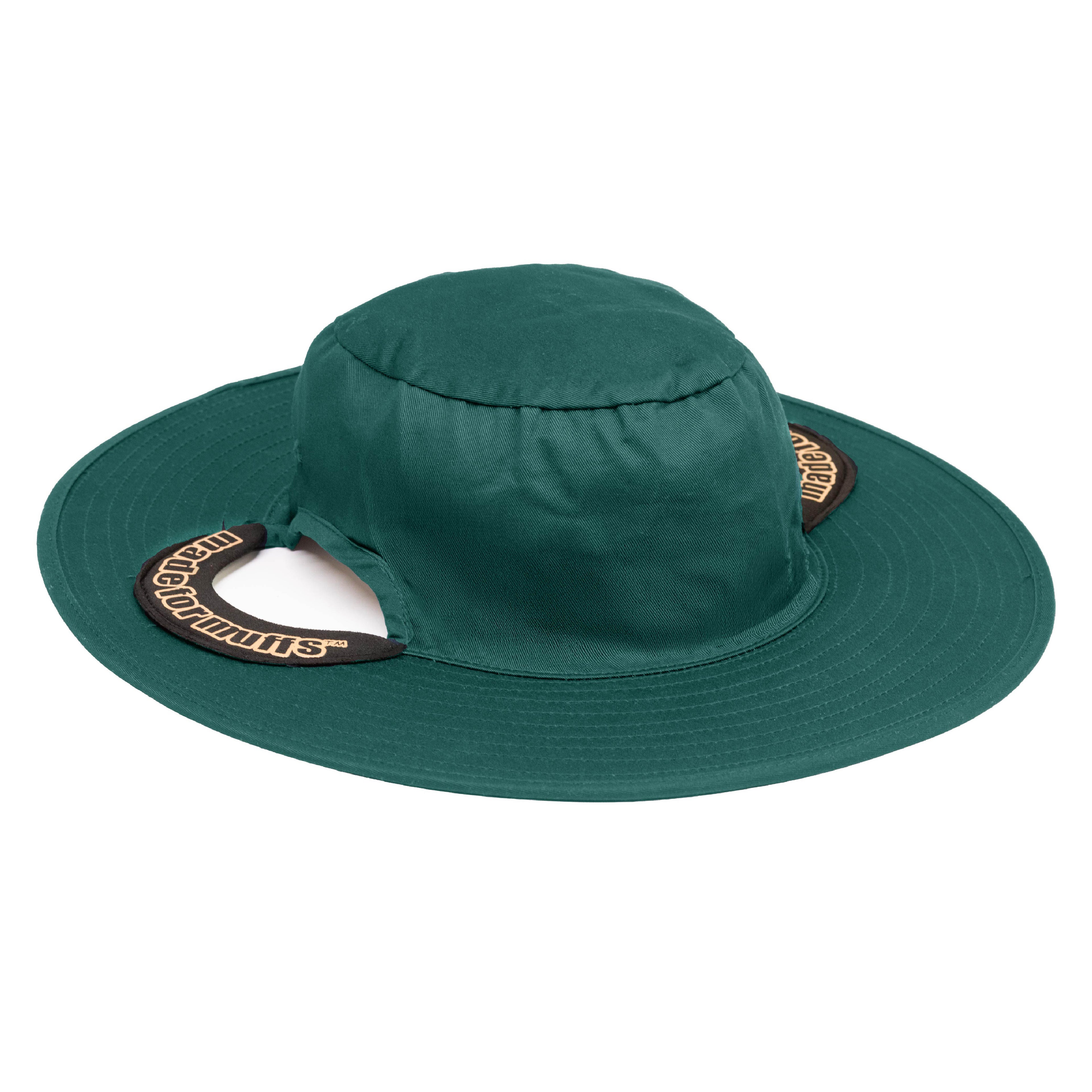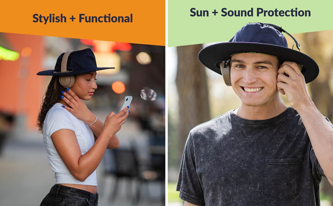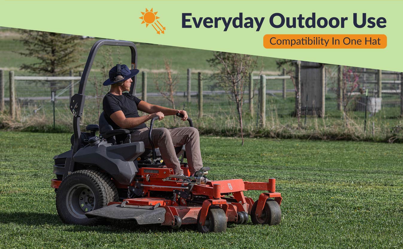Great idea. Ear muffs while mowing are much more convenient than plugs or buds. The hat offers excellent protection and is very comfortable.